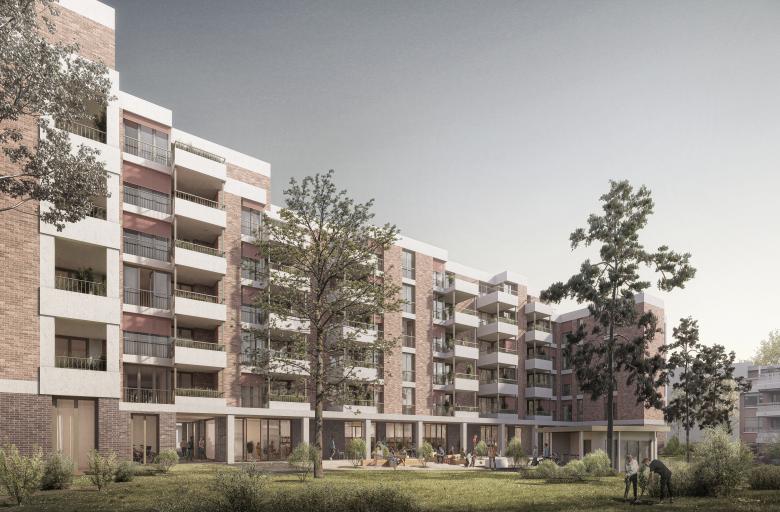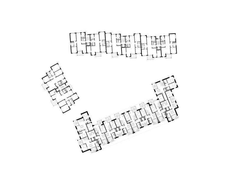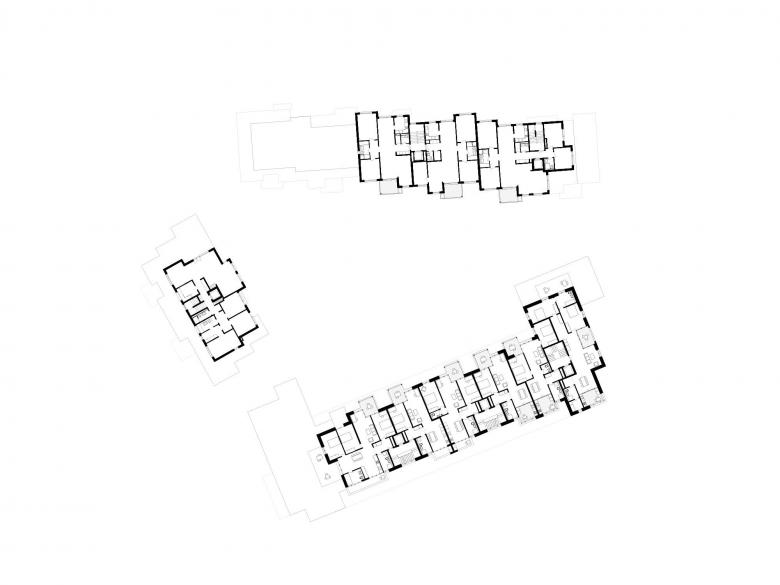 Der neue Zentrumsbau bezieht sich als strassenbegleitendes Volumen in seiner Massstäblichkeit auf die altrechtlichen Arealüberbauungen in zweiter Reihe. So besteht der Anspruch, einen neuen Ort zu schaffen, welcher dem Zentrum Unterdorf in Witikon eine neue Identität verleiht. Das in der Höhe gestaffelte Gebäude wird entlang der Witikonerstrasse über erkerartige Vorsprünge, Eckrisalite und vorgelagerte, erdgeschossige Teile als vermittelnde Elemente zur Nachbarschaft gegliedert. Der Duktus der bestehenden Bauten mit den Staffelungen wird im Neubau fortgeführt und eigenständig weiterentwickelt. Durch die strassenbegleitende Bebauung wird im Innern ein parkartiger Innenhof mit den bestehenden Bauten räumlich gefasst. Jeweils in Ost-West-Richtung und entsprechend der Kaltluftströmung ist das neue Ensemble offen und mit der Umgebung vernetzt. Über zwei offene Durchgänge wird der Strassenraum mit dem parkartigen Innenhof verbunden. Dadurch werden auch die Bestandesbauten in der zweiten Bautiefe auf selbstverständliche Art und Weise erschlossen. Zudem liegen an den Durchgängen angrenzend jeweils die Eingangshallen zu den Treppenhäusern. Eine Arkade artikuliert die Wichtigkeit der öffentlichen Bibliothek und trägt den Gedanken der Zentrumsfunktion nach aussen hin. Entsprechend der Lage werden unterschiedliche Wohnungstypen entwickelt. Im mittigen Gebäudeteil werden durchgesteckte Kleinwohnungen mit einer offenen Raumabfolge von Ess- und Wohnbereich mit vorgelagerter Küche angeordnet. An den Gebäudeflügeln befinden sich Über-Eck angeordnete Wohnungen.