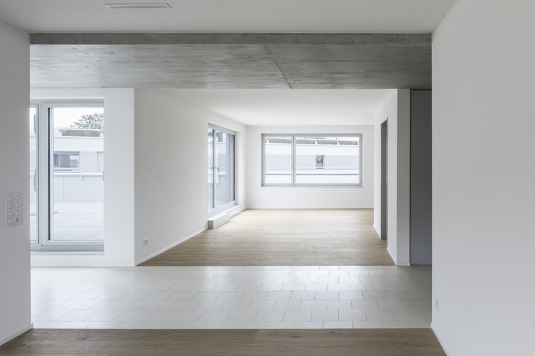 Das ehemalige Tanklager-Areal der Ed. Kübler & Co. AG, in städtischer Randlage, wird räumlich durch die Moränenhügel im Westen und den dicht bewaldeten Etzberg mit vorgelagertem Bahndamm im Osten begrenzt. Die städtebauliche Disposition stellt den Anschluss der südlichen Etzbergstrasse zum Wegnetz im Norden her. Zwischen den linear aufgereihten Baukörpern werden Durchblicke inszeniert, die in ihrer rhythmischen Abfolge über das Grundstück oder aus der vorbeifahrenden Bahn erlebbar sind. Bauten und Freiraum sind zusammengebunden zu einem Archipel, welches als eigenständige Figur eine massstäbliche Vermittlung zwischen aufgelockertem Siedlungskörper, grossdimensionierten Industriebauten und Landschaftsraum schafft. Jeder Wohnung wird eine unverbaute Weitsicht ermöglicht. Eine starke Verknüpfung der Wohnungen mit dem Aussenraum ist eines der Hauptanliegen des Projektes. Die in Länge und Tiefe variierenden Baukörper nehmen verschiedene Grundtypen von Wohnungen auf. Die kräftigeren Baukörper mit grösseren Wohnungen sind als 2- und 3-Spänner geplant, das Gebäude an der Etzbergstrasse mit Alterswohnungen auch als 4-Spänner. Die schlanken Baukörper gruppieren um jedes Treppenhaus zwei Kopfwohnungen und eine durchgesteckte Wohnung. Durch den Versatz an der Stirnseite der Häuser entsteht eine erkerartige Situation, wodurch den dort befindlichen Wohnungen eine dreiseitige Orientierung ermöglicht wird. Grundgerüst der Wohnungsorganisation ist eine Sanitär- und Erschliessungszone entlang der kompakten Treppenhauskerne. Abgehängte Decken nehmen hier alle notwendigen Leitungen auf. Im Übergang zum Wohnbereich weiten sich die Räume nach oben. Die unterschiedlichen Raumhöhen machen die Zonierung in Aufenhalts-, Erschliessungs- und Nebenräume als Raumfolge erlebbar. In den durchgesteckten Wohnungen macht ein zum Wohnbereich flexibel öffenbares Zimmer die Zweiseitigkeit spürbar. Im Erdgeschoss umgürteln frei wachsende brusthohe Strauchkissen einen privatisierten Gartenbereich. In den Obergeschossen werden den Wohn-Essräumen grosse Balkone vorgehängt. Ihre unregelmässige Setzung bricht bewusst die gleichmässige Fensterordnung auf und gewährt ausreichend Privatsphäre. Ihre Struktur erhält die Fassade durch die in Farbe und Ausrichtung differenziert ausnuancierten Felder aus Kratzputz. Es wird zwischen dem Brüstungsband, das die Balkone einbindet, und dem Fensterbereich unterschieden.