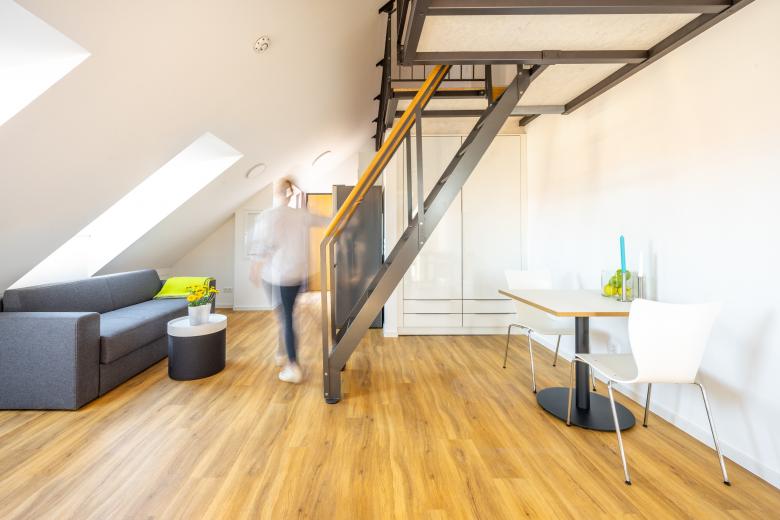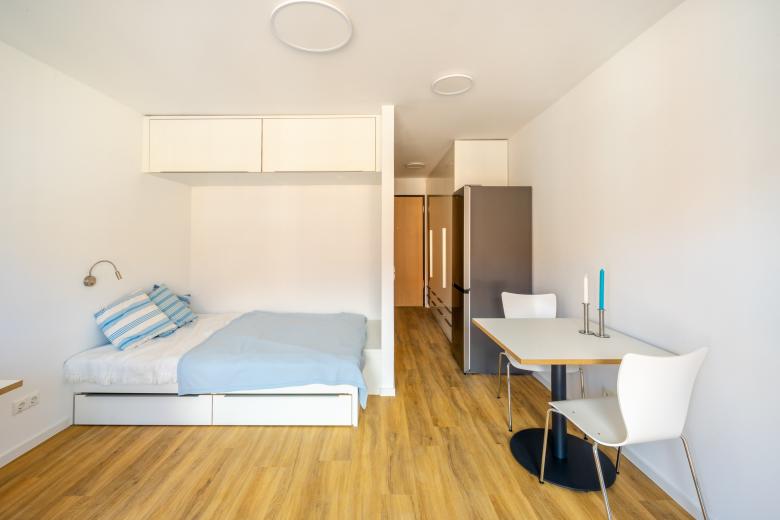 Die Gebäudestruktur ermöglicht das gewählte Wohnungsgemenge mit dem Angebot von qualitätvollen Wohnungen zwischen 21m² und 89m² und bietet somit Möglichkeiten für nahezu jede Konstellation sozialen Zusammenlebens. Single-Studenten, Familien und Wohngemeinschaften, durchmischte Altersgruppen sowie Menschen mit Behinderungen stellen die breite Zielgruppe des Angebotes dar. Die Vielfalt der Stadt wird im Haus abgebildet.