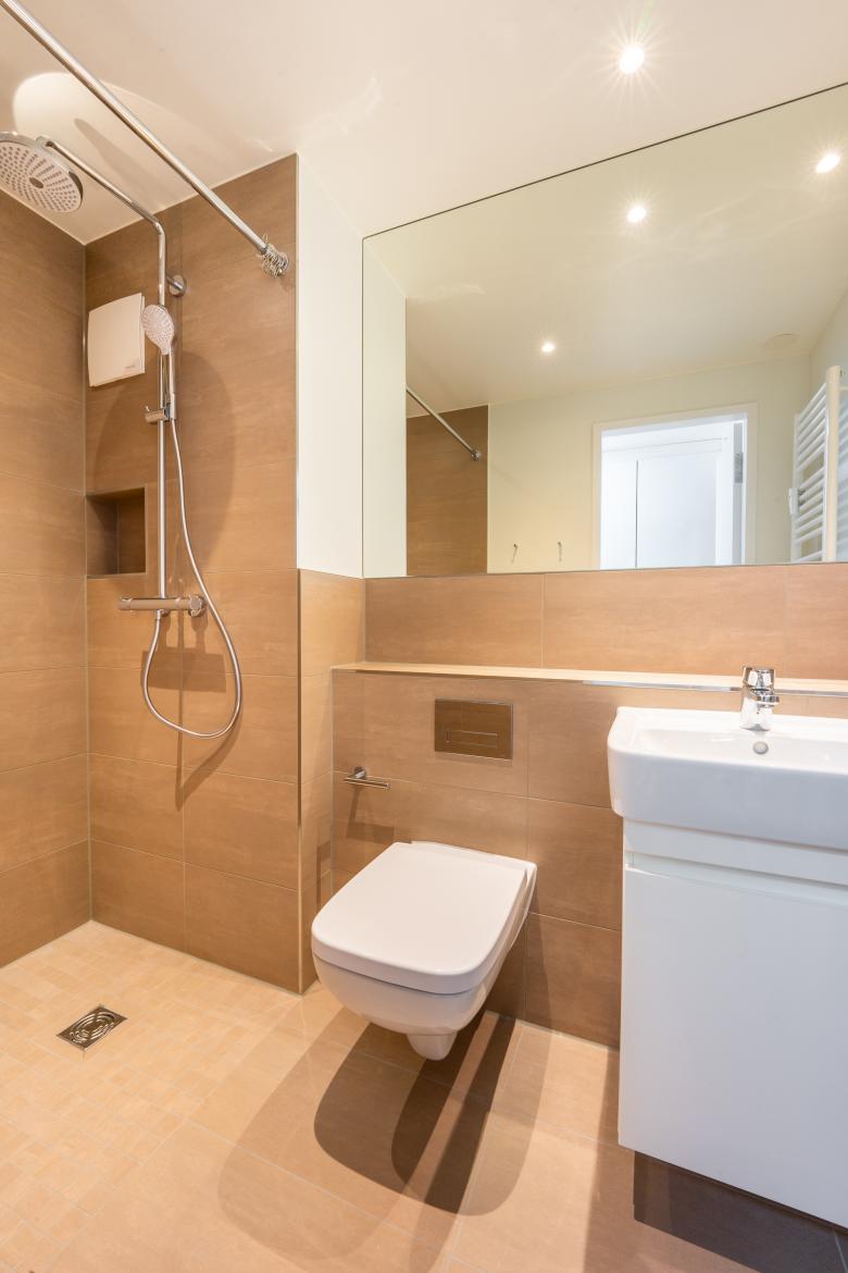 Die Wohnungseingänge befinden sich an der Südseite. Hauseingänge sind räumlich großzügig und mit Paketstationen ausgestattet. Große Personenaufzüge ermöglichen den barrierefreien Zugang innerhalb des Gebäudes zwischen allen Geschossen. Die Straße zur südlichen Bebauung wird als Spielstraße ausgebildet und für den Durchgangsverkehr gesperrt. Die Begrünung und Sitzplätze im Außenbereich lassen nahezu jede Art der Nutzung und Kommunikation zu.