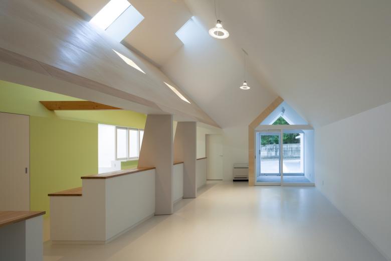 そして、南北の壁面に開口を設けるよりは、屋根面にトップライトを設けることで採光・通風を確保する事が自然に思われた。トップライトは夏場の直射日光に対する懸念から、切り妻屋根の北側に複数設けることとした。