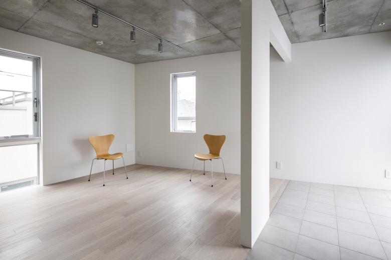 二つのスペースの間には、門型の壁を設けることで、緩やかに空間を仕切ります。