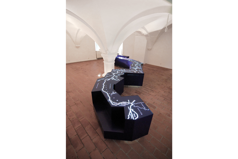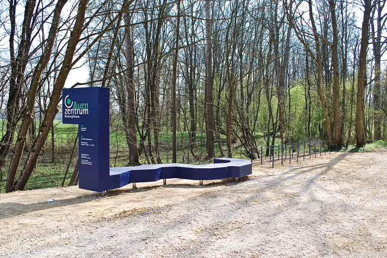 Das Aueninstitut Neuburg dient der Auenforschung und- entwicklung auf nationaler und euopäischer Ebene. Der Forschungsschwerpunkt liegt dabei im Bereich Auenökologie und Auendynamisierung unter Berücksichtigung von staugeregelten Flusssystemen. Das Zentrum besteht aus drei Teilbereichen: dem Aueninstitut als Forschungseinrichtung, dem Auenforum, für fachlichen Erfahrungsaustausch und dem Aueninformationszentrum als Schnittstelle zur Öffentlichkeit. Die Öffentichkeitsarbeit beginnt bereits im Außenraum mit speziellen Themenwegen, die durch Informationstafeln begleitet werden. Ein behutsamer Umgang mit der historischen Bausubsanz und eine intensive Auseinandersetzung mit den Inhalten führten zu einem Dialog von monolithischen Objektträgern, hinterleuchteten Stimmungsbildern und umgebenden Informationswänden und bilden auf dunklem Hintergrund eine einheitliche und übersichtliche Ausstellung. Mit Respektabstand setzten sich moderne Objektträger vor die bestehende Bausubstanz. Die klare Trennung zwischen den alten, rauhen und unebenen Oberflächen zur den neuen, glatten und geometrischen Möbeln gibt beiden Strukturen genügend Raum zur Entfaltung.