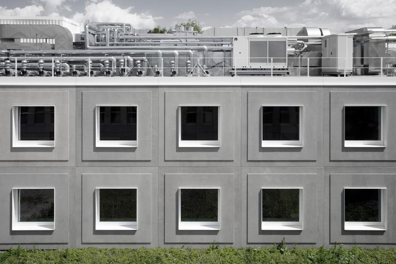 Neustes Mitglied der Leipziger TROPOS-Familie ist eine hocheffiziente Forschungsmaschine für die Analyse und das Modelling von Aerosol- und Wolkenbildung sowie deren Wechselwirkungen auf das Klima. Die modulartig gereihten und gestapelten Laboreinheiten mit prägnantem Freiluftlabor auf dem Dach erzeugen in direkter Nachbarschaft zum Wolkenlabor ein weiteres Icon für das weltweit einzigartige Forschungsprofil des Leibniz-Instituts für Troposphärenforschung.