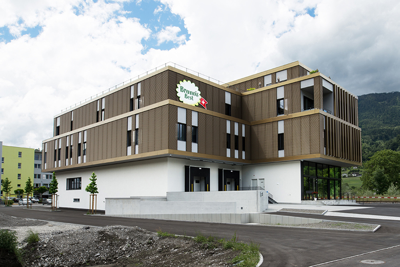 Repräsentatives Produktionsgebäude – Das neue Produktionsgebäude an der Kägiswilerstrasse 37 in Sarnen beeindruckt. Repräsentativer Charakter, eine hochwertige Fassade mit pulverbeschichteten Streckmetall-Elementen, einzigartig, kein reiner Zweckbau. Eine Reminiszenz an das Unternehmen.