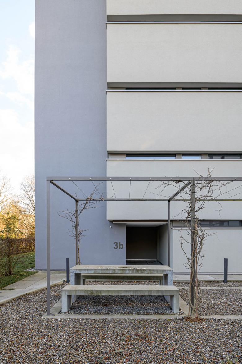 Fünf punktförmige Bauten sind in zwei Reihen versetzt so angeordnet, dass auch die hintere Reihe vom Ausblick in den Murgraum profitiert. Die Erschliessung und Zufahrt erfolgt über die Kesselstrasse, für die Altliegenschaften und Besucher der Neubauten über die nördliche Privatstrasse. Eine zentral angeordnete, gemeinschaftliche Tiefgarage zwischen den 5 Hochbauten regelt die Parkierung. Durch Fusswege sind alle Bauten miteinander verbunden und führen in das öffentliche Wegnetz über. Die zugehörigen Grünflächen fliessen zwischen den Bauten hindurch und sind allen Bewohnern zugänglich.
