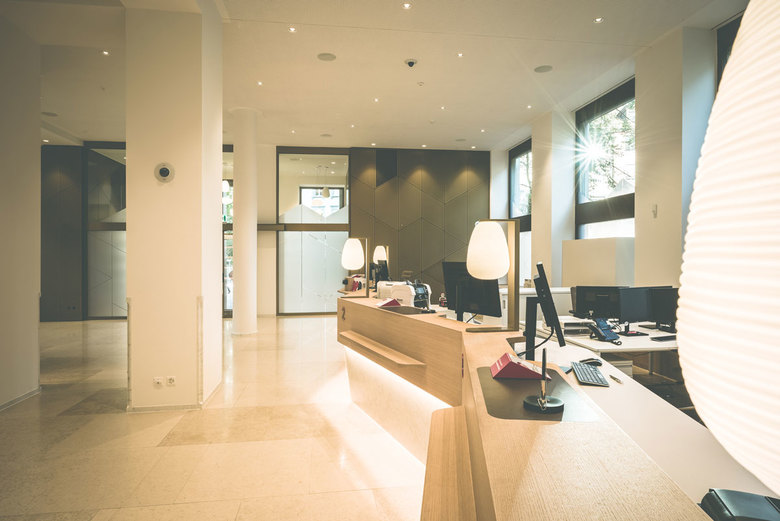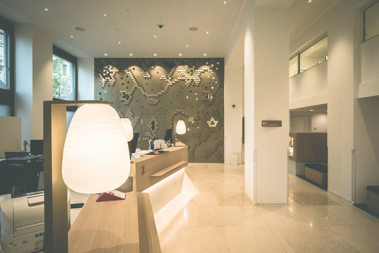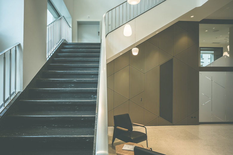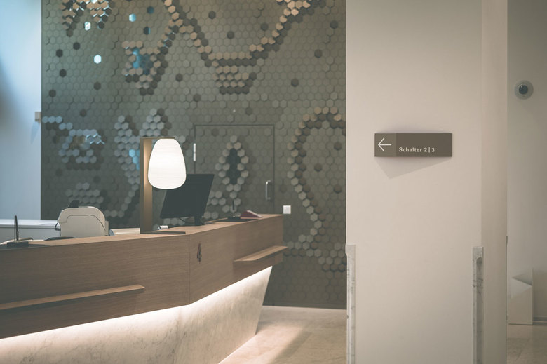 Der Hauptsitz der Regionalbank acrevis ist am zentralsten Punkt in der Innenstadt der Stadt St.Gallen zu Hause. Der Umbau der Kundenhalle ersetzt die in die Jahre gekommene und auch betrieblich veraltete Schalterhalle aus dem Jahre 1984 und repräsentiert die Bank neu durch offene, mit Tageslicht durchflutete und transparente Räume. Die Verschiebung des Haupteinganges zur Arkadenmitte und des Zwischengeschosses in den westlichen Teil des Erdgeschosses ermöglicht eine grosszügige, rollstuhlgängige Eingangssituation mit separater 24h-Zone. Die tragende Bausubstanz von 1935 bleibt dabei unangetastet. Wertige Schaltermöbel in der überhohen, hellen Halle erlauben eine schrankenlose Begegnung von Bankmitarbeitenden und Kunden. Im normalgeschossigen Bereich unter dem neuen Zwischengeschoss finden sich Wartebereich, drei Sitzungszimmer für Beratungen und das Back Office mit Diskretschalter. Im Zwischengeschoss sind die Arbeitsplätze der Kundenberater sowie WC‘s, Küche und ein Besprechungszimmer untergebracht. Kunden- und interne Bereiche im UG werden renoviert und ein IV-WC eingebaut. Die Erneuerung der gesamten Haustechnik geschieht bei laufendem Betrieb. Als Ersatz für die Kundenhalle dient während der Bauzeit ein Banken-Provisorium auf der Nordseite. Alle Büro‘s in den Obergeschossen erhalten zudem neu eine Kühlung.