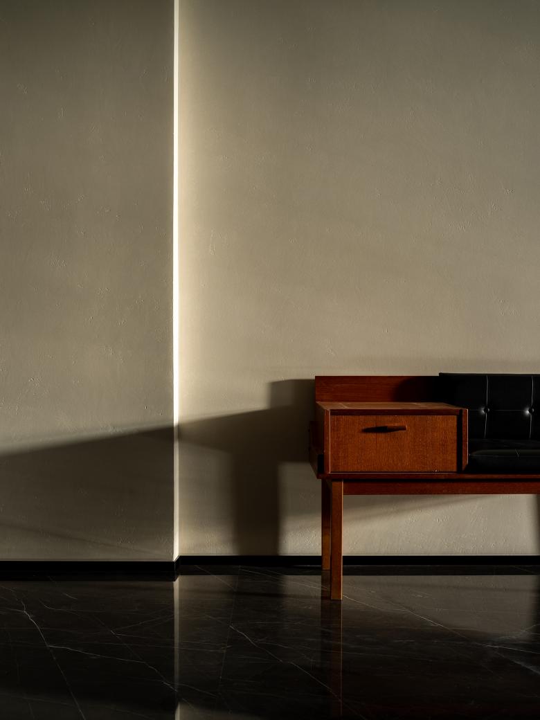 Objects shape the space and its spirit by the action of light. Light and objects are interdependent. The designers resorted to light to better outline the form of the space to subtly impact its mood, and thus to create a sense of self-consistent presence rather than being an independent system, let alone an abrupt opposition.