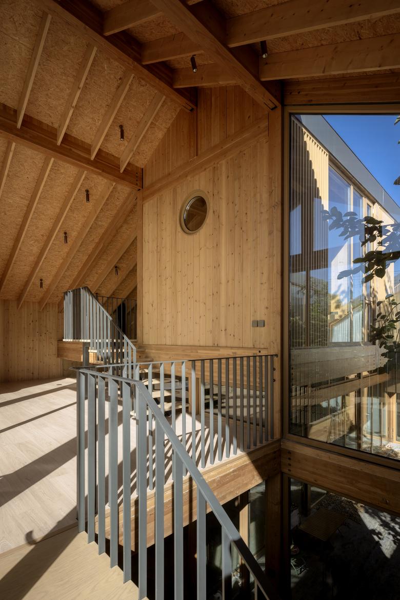Sustainability and recyclability were fundamental principles in material selection, with cost control also being a key consideration. Timber, with its warm, natural texture and low-carbon footprint, was chosen as the primary structural material. Prefabricated timber construction ensured precision during the building process and guaranteed high-quality execution.