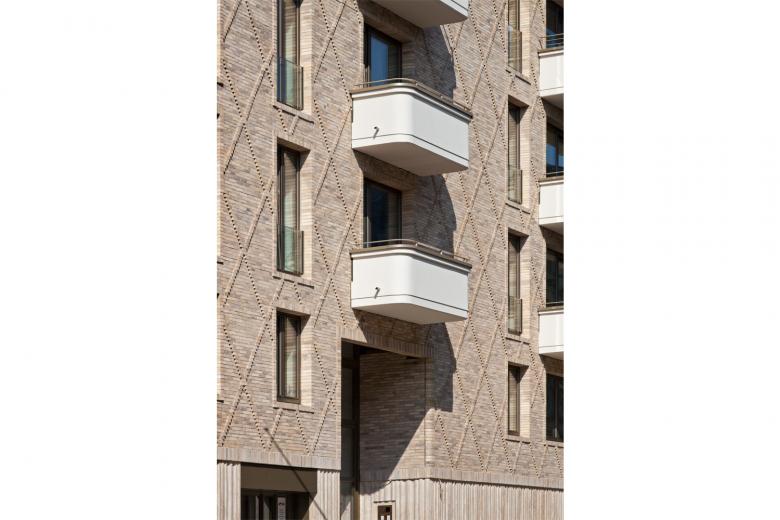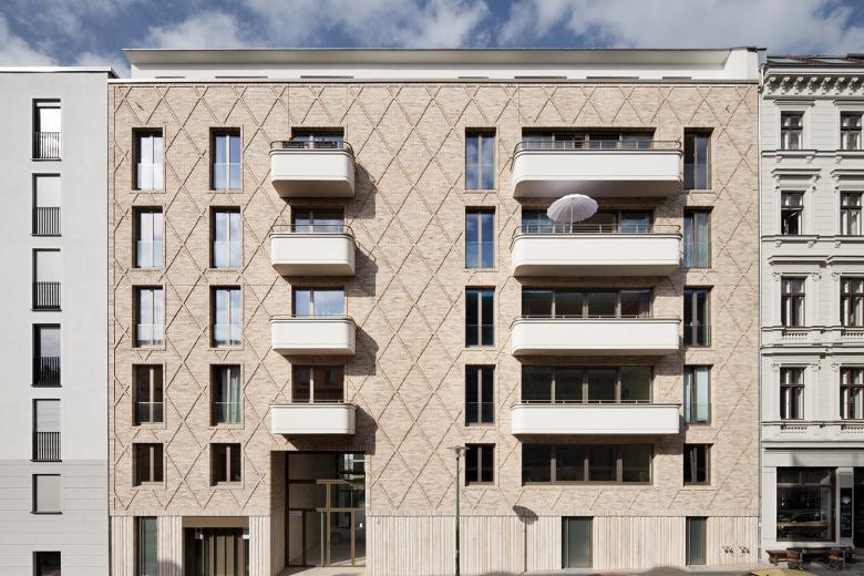 Im Berliner Kollwitz-Kiez besetzten BFA ein bisher unbebautes Grundstück mit einem hochwertigen, modernen Wohngebäude in der Art der klassischen Moderne. Die zur Straße gewandte Fassade spielt mit der umgebenden Industriearchitektur und präsentiert sich als ornamentierte Ziegelfläche mit drapiertem Sockelgeschoss aus Beton, einem einladenden Eingangsbereich und opulenten Balkonen. Die Rückseite nimmt sich mehr zurück und wird durch eine weiche Rundung dominiert, welche sich an die Moderne anlehnt.
