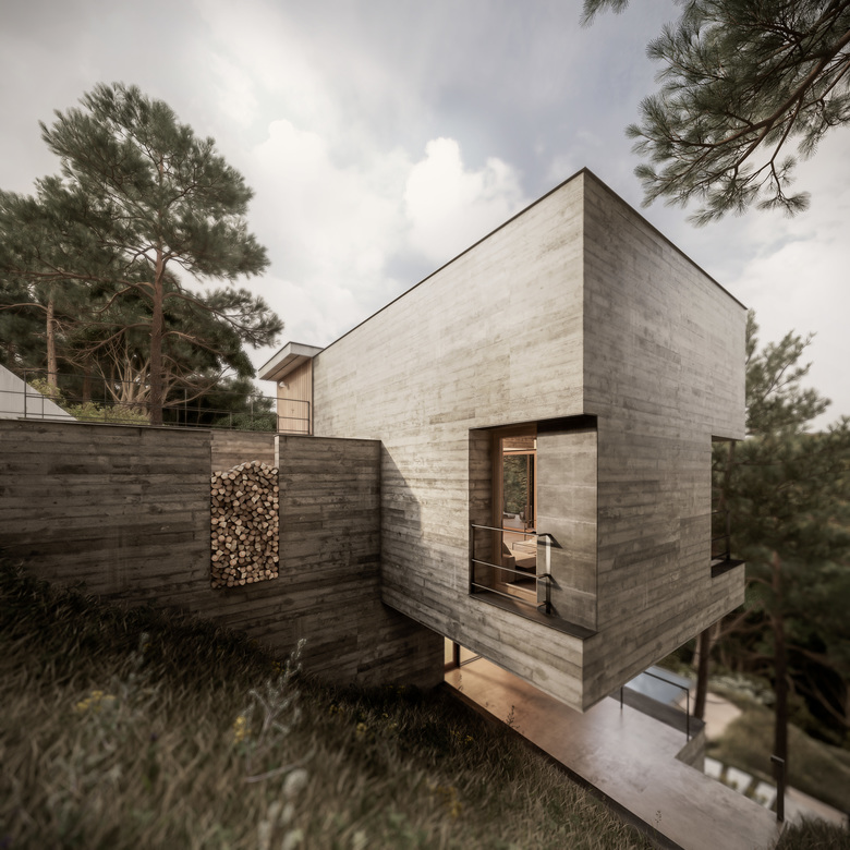 House in Nature ist ein internes Projekt, das wir in mehreren Plattformen und Foren international bekannt gemacht haben. Die Visualisierung mit dem stehenden Auto ist in den Sozialen Medien viral gegangen. Architektonisch liessen wir uns durch den Architekten Daniel Isern inspirieren.