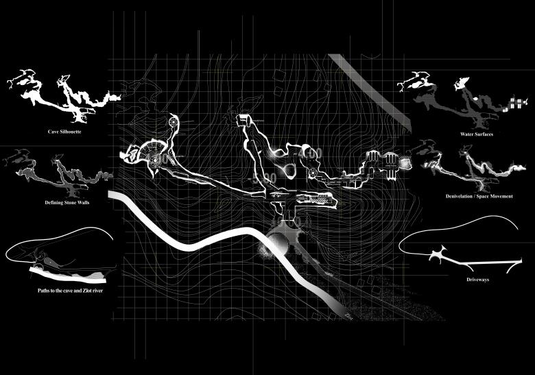 The concept was developed through a comprehensive examination of the terrain geomorphology in Eastern Serbia, with a particular focus on the dynamic natural transformations over time. The central idea was to integrate a new type of spa experience within Lazar's Cave, a prominent speleological site near Zlot, located in eastern Serbia. This site is part of a rich cluster of caves, each with unique geological characteristics. By following the principles of speleology, the project aims to offer a fresh perspective on the intersection of architecture and nature, within the context of spa design.