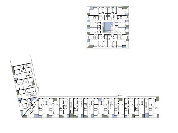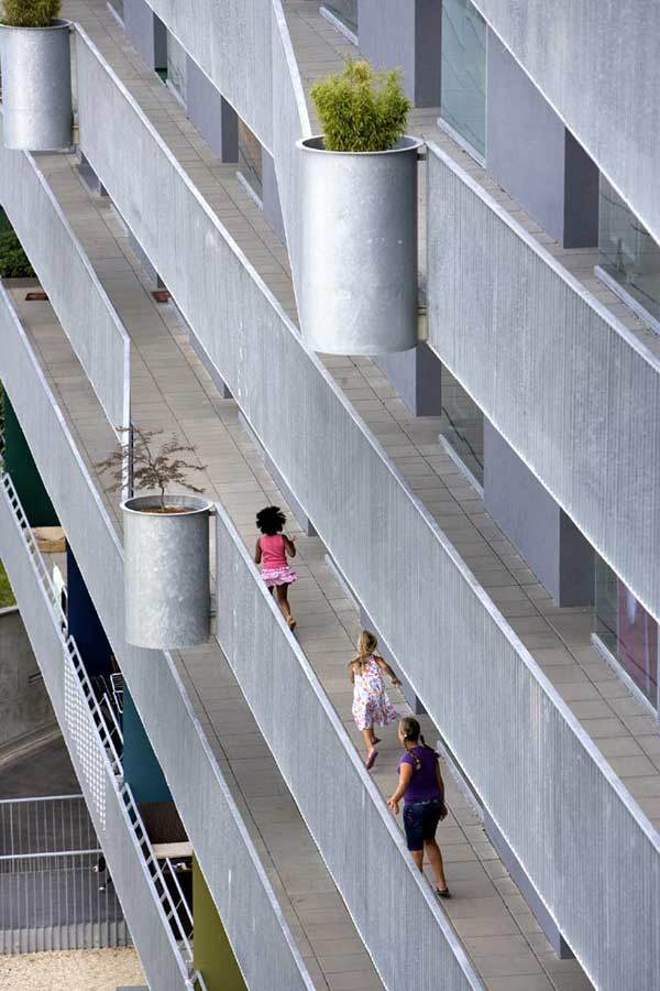 Die Gebäudetypologie als „gestapelte Stadt“ erlaubt hohe Grundrissvielfalt.