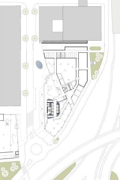 Öffentlichkeitswirksame Nutzungen wie Bürohauseingänge, Lobbys, Kinderbetreuungseinrichtungen und eine sowohl von Austro Control wie auch extern nutzbare Ausstellungs- und Veranstaltungshalle attraktivieren sowohl den Straßenraum wie auch das Wegesystem auf dem Sockel.