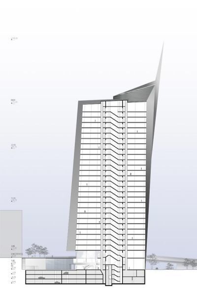 Das neue Verwaltungsgebäude der Austro Control entwickelt sich als Hochhaus über einem 2-geschossigen Sockel, in welchem sich alle allgemeinen und öffentlichen Funktionen der Unternehmenszentrale befinden. Durch seine Höhenentwicklung und markante Fernwirkung wird es zum städtebaulichen signifikanten Kopfbauwerk des neuen Hochhausensembles.