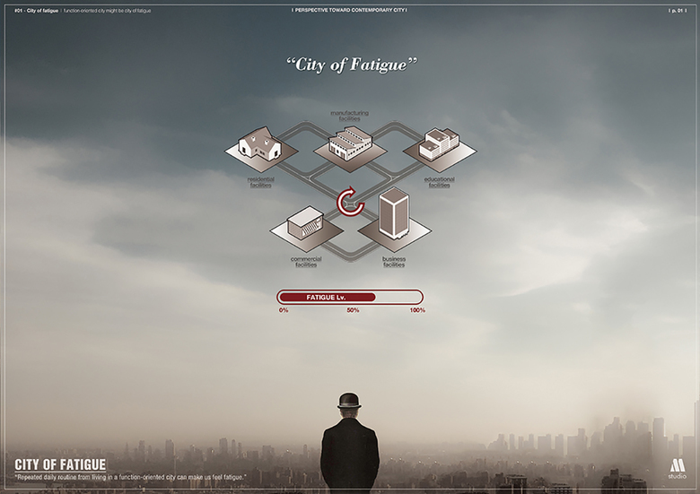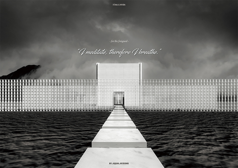 There is no doubt that architecture can be existed only when 'function' -which enables one's or society's necessity- is in need. This simple correlation between architecture and function always have been and always will be. It's true that 'function' enriches our lives with convenience and efficiency but at the same time it seems inevitable that living in a function-oriented city can make us feel fatigue by repeating endless loop of daily routines. This project is devoting itself to answer these following questions -'What is necessary for the city of fatigue besides function?', 'How can we be relieved when we are fatigued?'-. Being lost in meditation through spatial odyssey might be the answer.