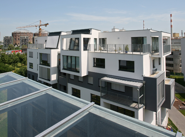 Die Baukörper, die sich im vorgegebenen Widmungsprofil befinden, werden durch die gewählte Wohnungstypologie stark differenziert. Dadurch wird eine außerordentlich lebendige, bauplastische Gliederung erreicht, die die innere Struktur der Wohnungen außen ablesbar macht.