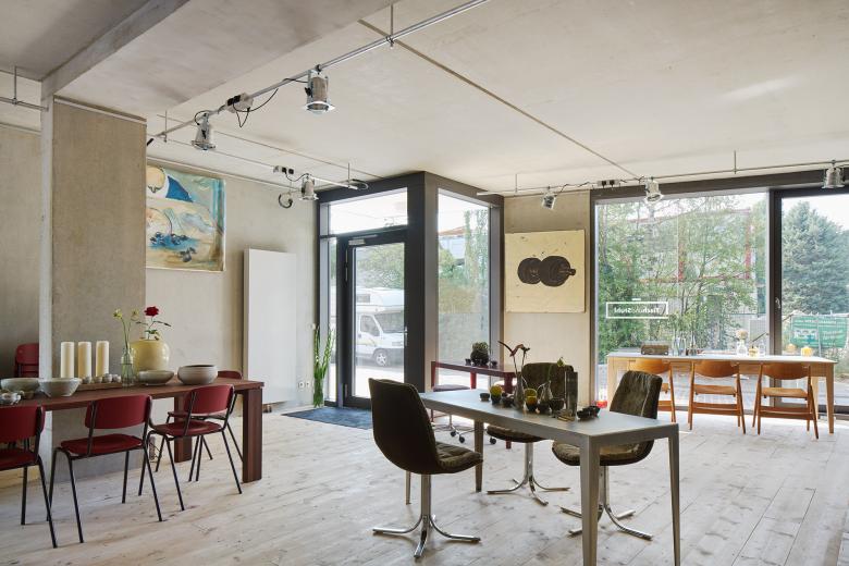Ein fünfgeschossiger Kopfbau aus Sichtbeton ergänzt den Torso der ehemaligen Goldleistenfabrik in der Gaußstraße in Altona. Auf ca. 500 qm entstanden Ateliers und Werkstätten und ergänzen die Flächen in dem Fabrikgebäude von 1900. Der neue Baukörper schließt die im Krieg entstandene Baulücke, die durch Zerstörung des Mittelteils der Fabrik entstand, nicht in Gänze. Das zeitgemäße Material Beton soll Ergänzung aber auch Weiterbauen thematisieren. Neubau und Baulücke befinden sich genau im Knick der Gaußstraße. Durch seine um ein Geschoss überhöhte kompakte Baumasse wirkt der Neubau daher aus beiden Richtungen als Gelenk und visueller Endpunkt des Straßenraums. Die flächenbündig eingesetzten Übereckfenster leiten vom Straßen- zum Hofraum über. Sockel und Dach werden damit wie im Bestand thematisiert. Unbehandelte hölzerne Dielenböden und wenige weiß gespachtelte und gestrichene Wände stehen im Kontrast zum vorherrschenden Material Beton.