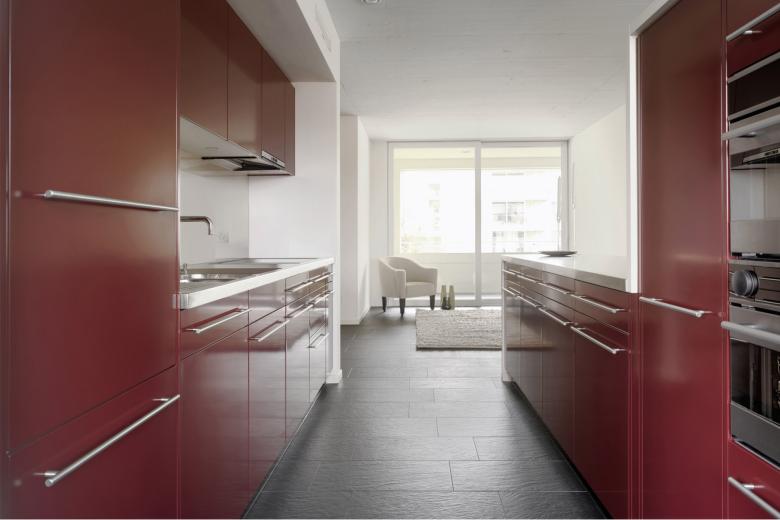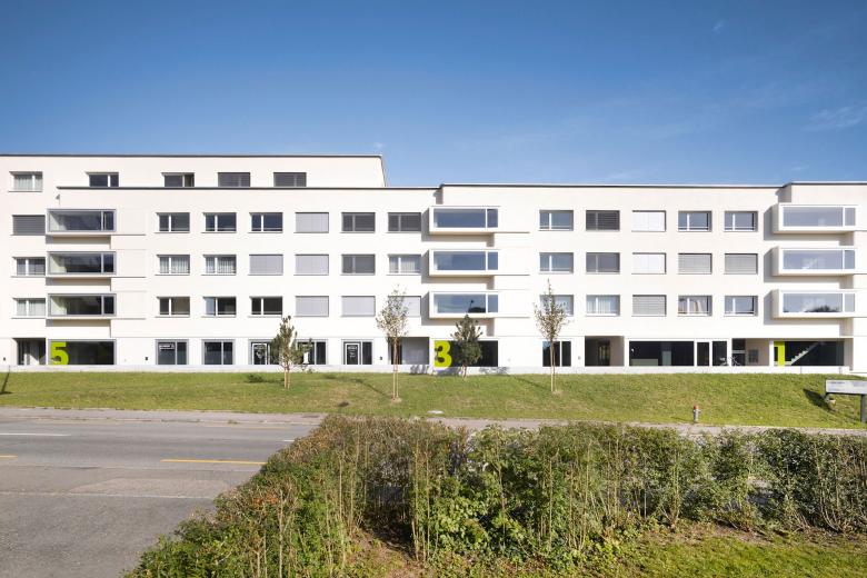 Der Neubau der Siedlung Bramen ging aus einem Wettbewerb hervor, den ADP im Jahre 2005 für sich entschieden hatte. Aufgabe war, das Subzentrum Bramen in Kloten zu stärken. Hierzu wird in einer ersten Etappe entlang der Schaffhauserstrasse ein dreigeschossiger, differenziert und fein modulierter Riegel platziert. Ein Attikaaufbau, der sich über zweidrittel der Gebäudelänge erstreckt, artikuliert dabei den höchsten Punkt des Geländes. Die vier als Zweispänner ausgebildeten Gebäudeteile wirken aufgrund ihrer Fassadengestaltungselemente - den feinen Volumenversätzen, den Kopfausbildungen an den Gebäudeenden und den präzise positionierten Fensteröffnungen - wie eine bauliche Einheit. Diese bilden städtebaulich sowohl den Abschluss als auch das Gesicht der Gesamtsiedlung und dienen der rückwärtigen Etappe B als Schallschutzriegel. Erschlossen werden die Häuser über eine Sockelpromenade entlang der Schaffhauserstrasse mit öffentlichen Nutzungen. Die Fassade aus vorfabrizierten Betonelementen und verputzten Fassadenteilen strahlt eine unaufdringliche Eleganz aus und gewinnt so an Eigenständigkeit.