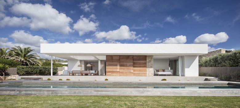 The first step was to take maximum advantage of the breadth of the plot to appreciate the views over the Mediterranean and make the architecture blend into the landscape. The idea was to create a wide span in order to achieve exaggerated openings with glass doors that glide across and disappear behind walls, making the house itself retreat into the background.