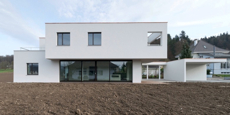 Der scharfkantig formulierte Baukörper, dessen Kanten den baurechtlichen Festsetzungen folgen, komplettiert als letztes Glied das über die Jahre gewachsene Quartier einer Gemeinde am Jurasüdfuss. Das Wohnhaus, für eine vierköpfige Familie konzipiert, bietet die Möglichkeit der Abtrennung einer Einliegerwohnung. Das Haus zeichnet sich durch seine klare und prägnante Form aus. Bei aller Radikalität nimmt es eine angenehme Selbstverständlichkeit im dispersen Allerlei seiner Nachbarschaft wahr.