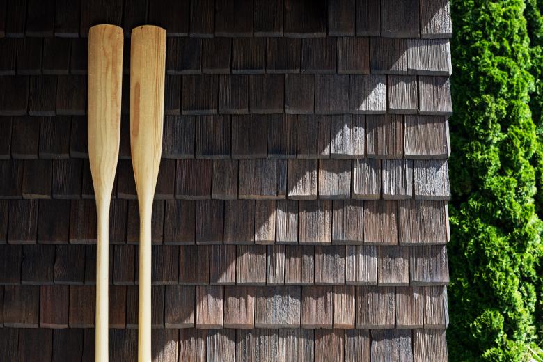 Situated on the lakeshore of Ammersee, the house overlooks one of the Bavarian lakes in Fünfseenland. Photographing during summer had its benefits. The long daylight hours granted that extra time between motifs to experience and get a genuine feel for the architecture, which in turn positively influenced the photography. To capture the building at its best, I moved slowly and observed the light as it constantly changed. In particular, I wanted to document the shingle facade, a natural material with an aesthetic quality that changes in appearance with the time of day.