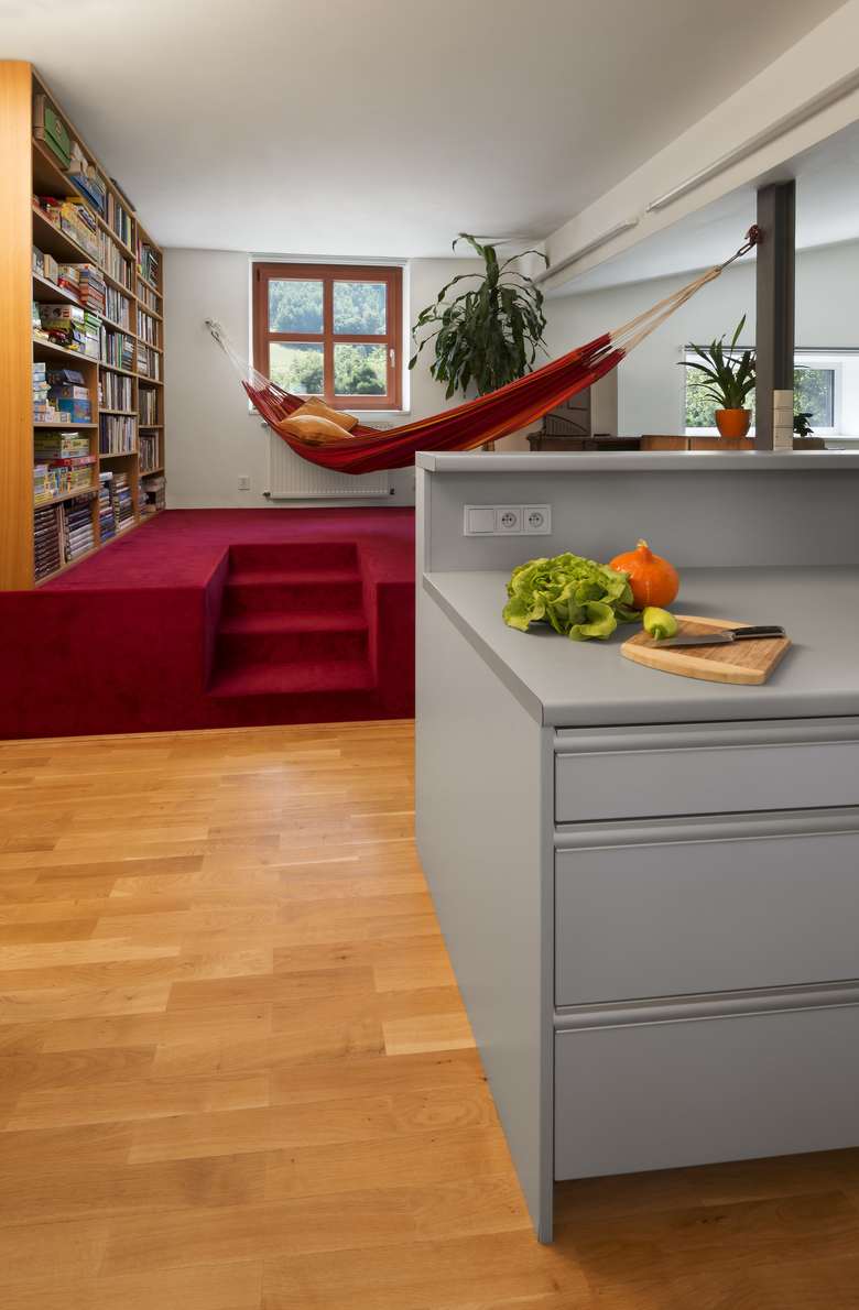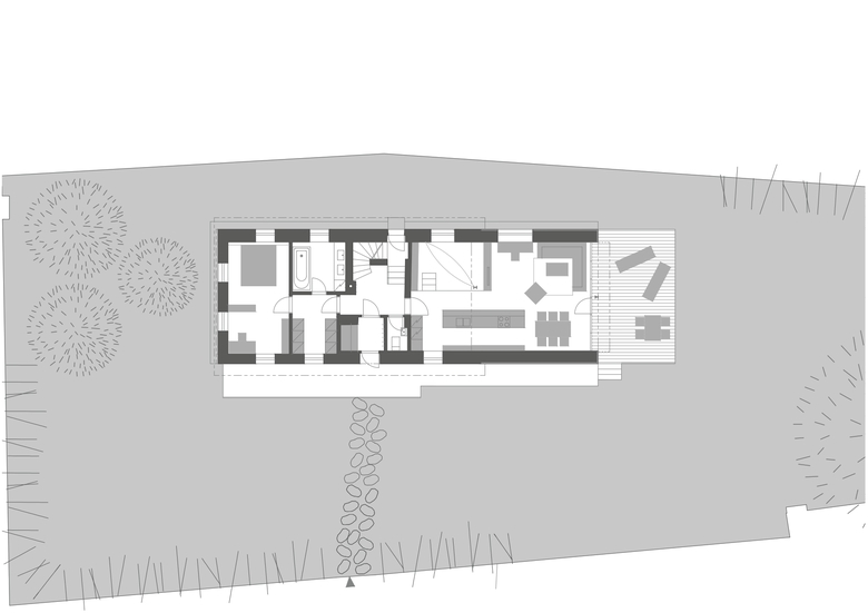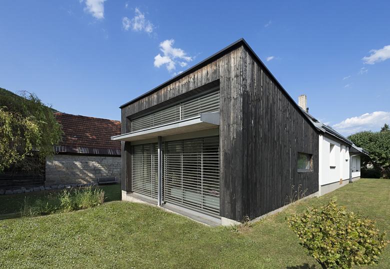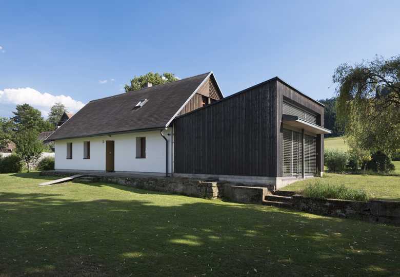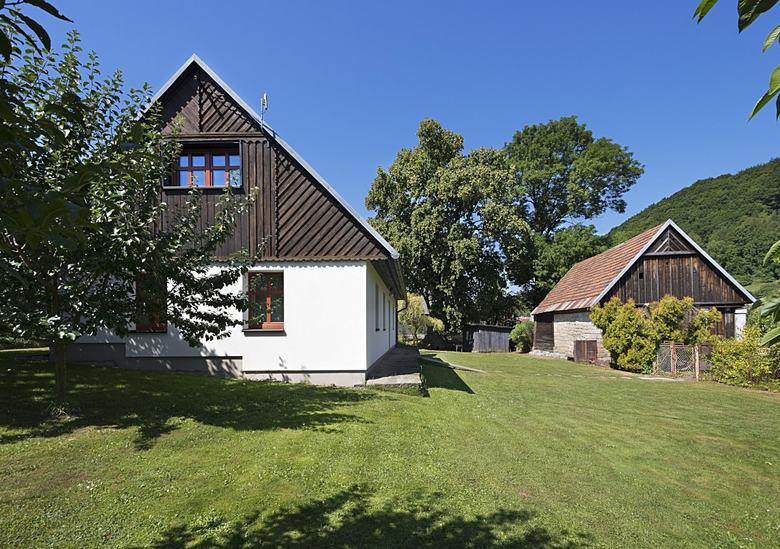 The reconstruction of the family house is in progress continuously since 2004, when the investor inherited the object from ancestors. The owner is a building engineer, therefor he is making most of the construction work himself. All the changes on the family house are leading towards of remaining the genius loci, which also charmed the Czech writer Alois Jirásek. He added the family house, particularly the garden with the linden tree, into his novel F. L. Věk. The roof over the new part of the building is rising towards the crown of the linden. The layout of the ground floor was modified by shifting the bathroom and bedroom from the demolished old extension into the big existing building. The new volume on the side of the house became the living room and the main area of the house. The volume also has higher ceilings than the rest of the house and is orientated to the west sunny side. Two new bedrooms with a private bathroom are situated in the attic of the house. The garden was also rebuilt where exotic plants were removed and replaced for local plants.