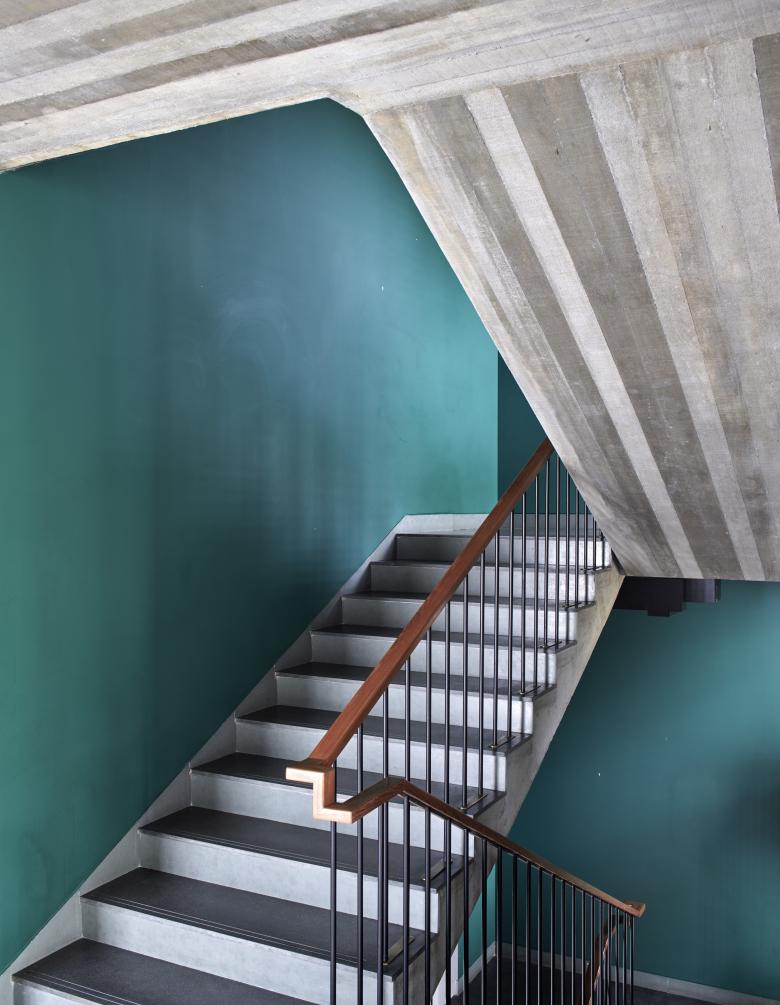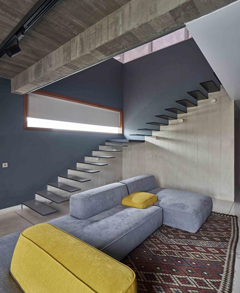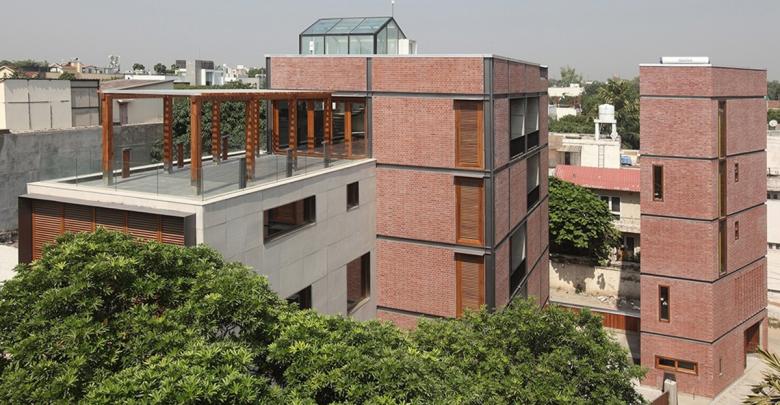 The Tower House is a multi-generational home on a peculiar wedge-shaped site, on the end of a row of semi-detached buildings in New Delhi. The building is conceived as three distinct masses that respond to the site’s geometry and the family’s needs. In a city where the urban texture is increasingly defined by plaster buildings clad with laminates and textured paints, the tower house attempts to bring back an architectural language that appears to be slipping away from our urbanscape. Internally also, countering the tendencies towards false ceilings and decorated surfaces, the building celebrates the exposed concrete ceiling, cast in situ floors and exposed brick walls. The narrow front portion of the house comprises of 2 living spaces, both double height which sectionally connect the four floors of the house. Materially the front block is constructed out of stone and wooden louvers with the fenestrations informed by the sight lines defined from within the building. The second block is the private living space for the family. Sectionally simpler, this block is constructed in brick and steel and set within a very rigid geometric grid of open and closed zones. In an increasingly digital age, the house aimed to disrupt trends of cellular living by designing common spaces that allow for autonomous and collective living at once. The double height family spaces force social contact in perhaps a banal but vital day to day manner. The third block is a service tower which houses staff living spaces, generators, water pumps and other services. This tower is a reconstructed remnant of the previous building that stood on the site and a reminder of the site geometry.
