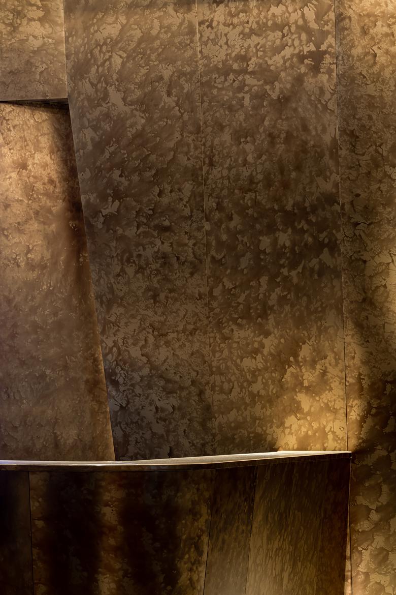 In front of the azure curtain wall, the eroded metal plate wraps the bar, as if hitting a deep and powerful spatial drum beat under the sea. Through volume and surface, the functional area design has found a suitable fusion point for the fashionable contemporary sense and the most profound nostalgia. Therefore, the place has a great tolerance, not only presenting the history, but also bearing the unknown.
