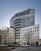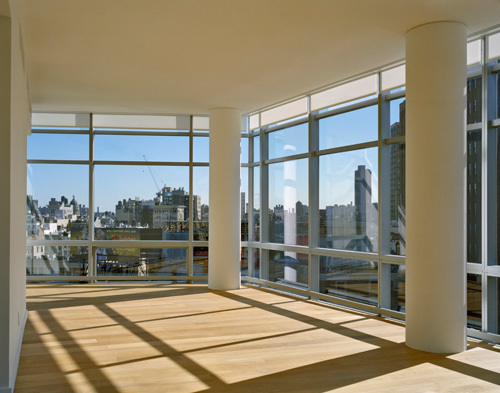 Over the course of decades, New York's industrial and manufacturing areas have evolved into residential quarters. Located at the fulcrum of Tribeca's four historic districts, 1 York is a new artifact of the city's constant reinvention. A simple, nineteenth-century brick building, which takes up a small city block, supplies the starting point for this new residential structure. On the exterior, the scale and features of the old building are retained, preserving the still industrial texture of the area. On the interior, the solid masses are cut and carved, and a prismatic, ethereal insertion transforms the old building from within and adds seven floors. Like a quartz vein running through stone, the addition both fractures and fuses the building, illuminating and clarifying its dense materiality.