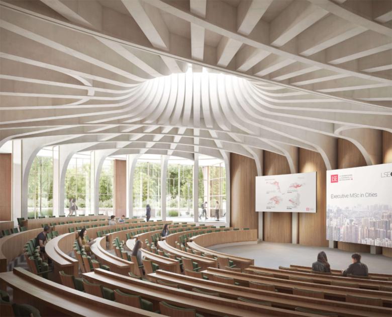 The new building accommodates teaching spaces, faculty offices, seminar and meeting rooms as well as an Institute for Africa and world-class Executive Education facilities with a private restaurant on the top floor. At ground level there is a public lobby with a café and 300-seater Agora; a visionary new space designed for public, professional and academic gatherings within and beyond the LSE.