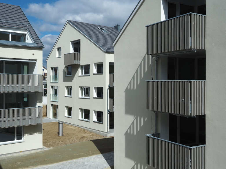 in den häusern zur bahnhofstrasse befinden sich im erdgeschoss drei gewerbeeinheiten. als hauptnutzung werden 67 mietwohnungen, sowie 12 eigentumswohnungen realisiert. der wohnungsmix beinhaltet moderne und funktionale 1.5 bis 4.5-zimmer wohnungen. eingezogene loggien zonieren den grosszügigen ess- und wohnbereich, und sorgen für eine helle und angenehme raumatmosphäre.