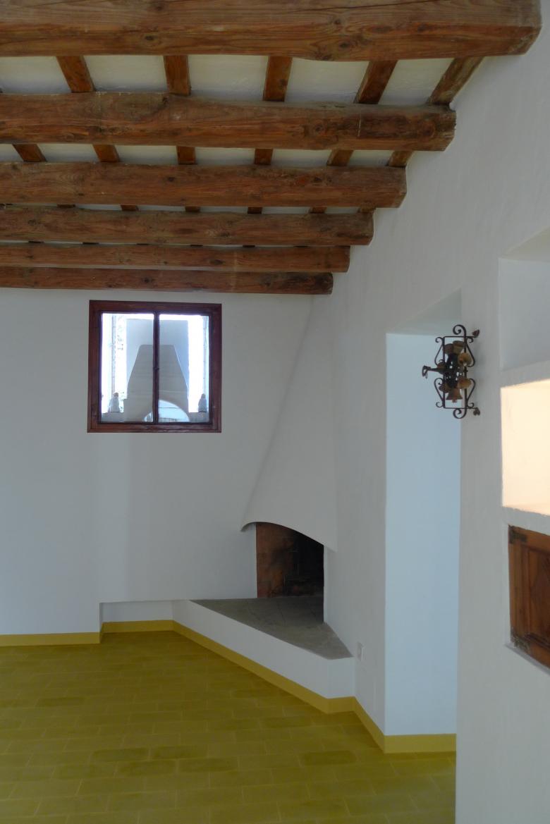 The starting point is an 18th-century farmhouse. The guiding principle of the design lies in leaving the materials untreated and in their natural state. Therefore, the intervention focused on the renovation of the walls and finishes, as the house required immediate refurbishment. The wooden beams are left exposed, accentuating the materiality of the visible construction element. In contrast to these, the mustard-colored hydraulic tile flooring engages in a play of harmonious and tranquil contrasts. After the project, the house retains its period charm with touches of color and modernity, allowing it to be inhabited with great comfort.