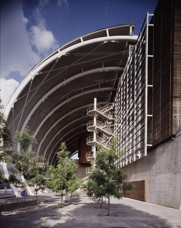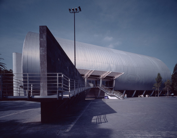 The shell form is a result of the dialogue established by the project with its natural and urban context, and the shell's dual nature helps blur the distinction between interior and exterior space.