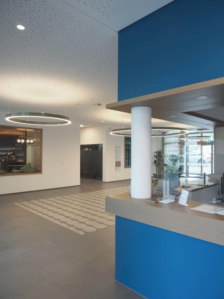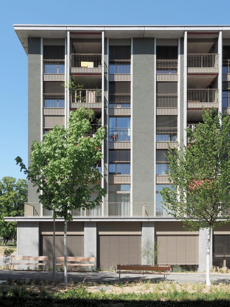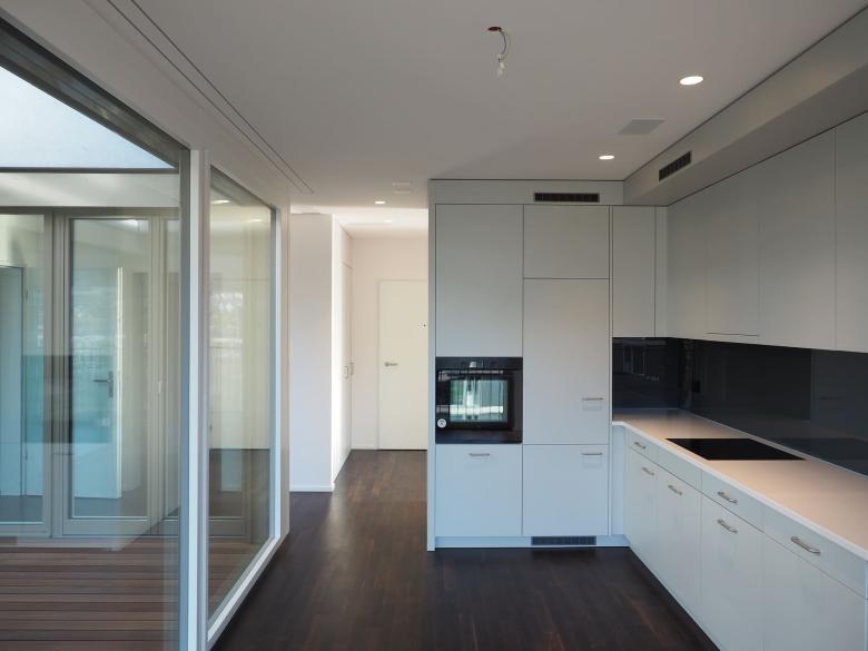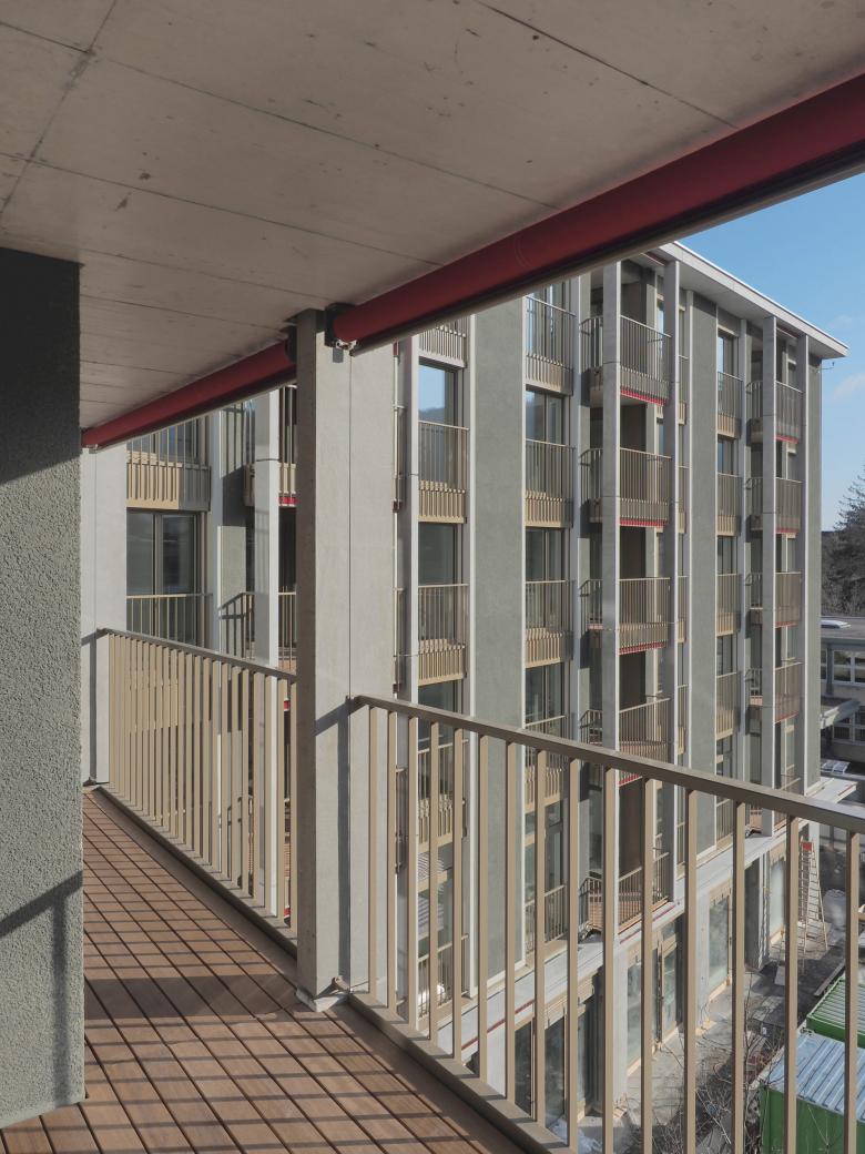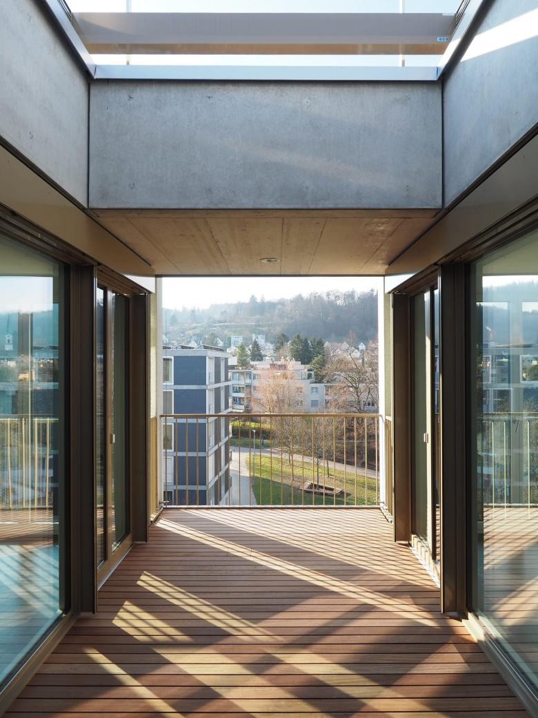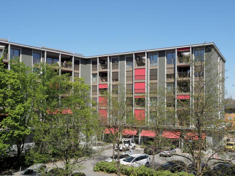 das minergiezertifizierte gebäude versteht sich als zentrum für alle zur genossenschaft gehörenden bestandsbauten. das erdgeschoss umfasst gastroküche, restaurant und viele weitere gemeinschaftsräume. die pflegewohngruppe mit 18 einzelzimmern ist im 1. obergeschoss situiert. in weiteren drei regelgeschossen befinden sich insgesamt 66 altersgerechte 1 bis 3-zimmerwohnungen. im attikageschoss werden diese durch 13 grosszügige 2 bis 4- zimmerwohnungen in gehobenem standard ergänzt.
