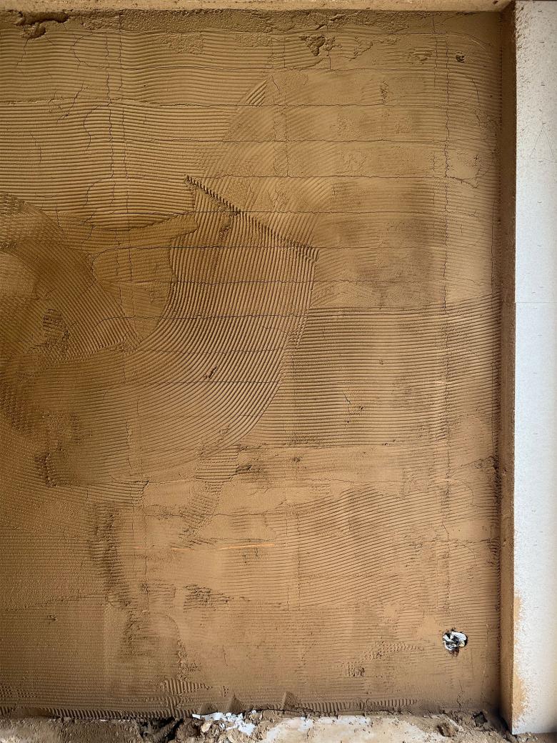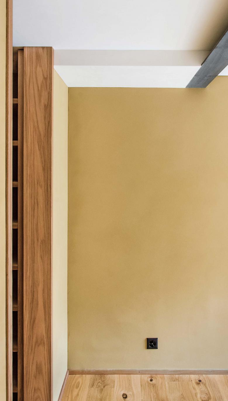 Einblick in den Schlaf-/ und Wohnbereich an den neuen Innenwände, Kalkputz an den Innenflächen der Aussenwänden.