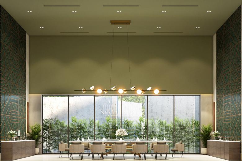 Indoor and outdoor spaces do flow. A generous headroom do emphasize a greenhouse feel. The internal spaces have a fresh and yet luxurious feel.
