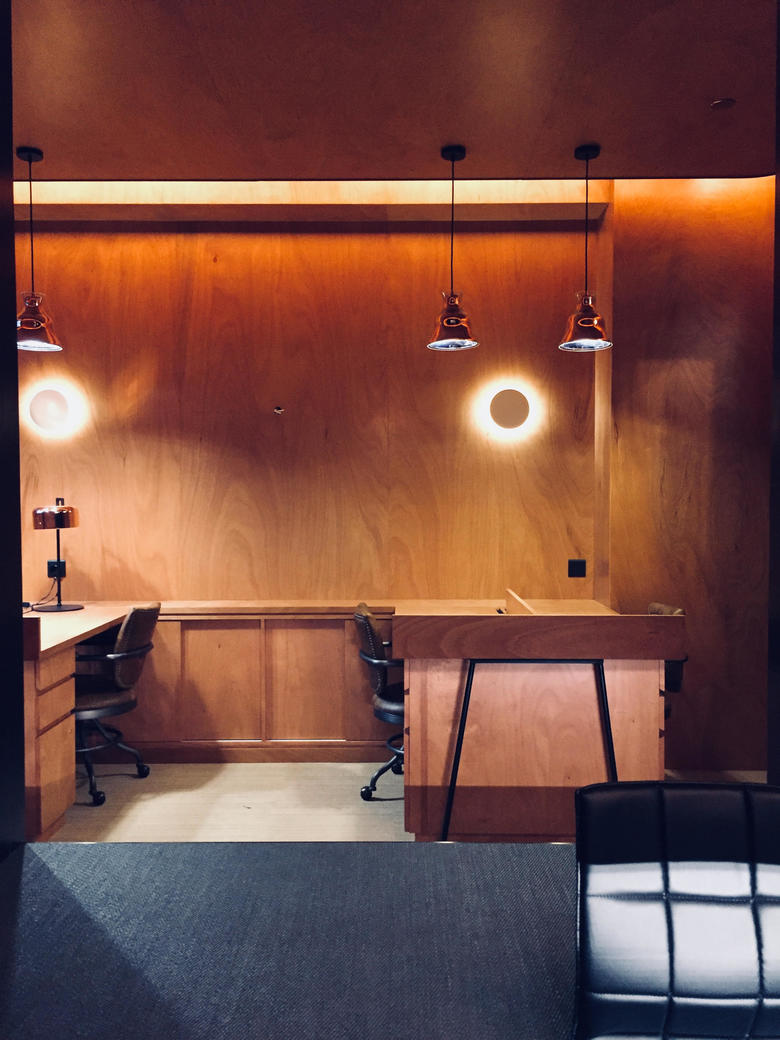 We have placed one of these shelves into a portal, so that it would array and radiate infinitely by self-reflecting mirrors in the porch. Conceptually, these two pieces of furniture formed part of the memory narrative that rested on volleys of paradoxes: they are antiques that are housed within a contemporary designed space. This contemporary space is housed within an old building - within an aging district. The space housed two individuals from very different trades: a mahjong parlor bookmaker and an advertiser.