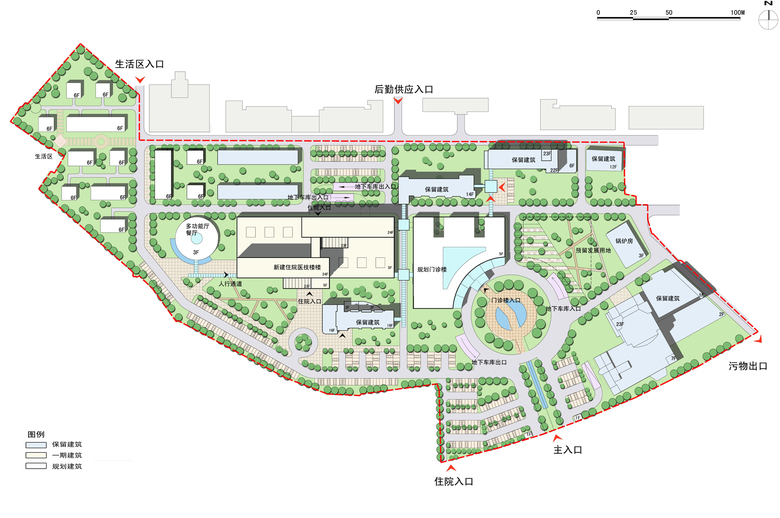Funktionsdiagnostik, 40 Operationssäle und Intensivpflege, Zentralsterilisation, Pflege, Lehre, Logistikeinrichtungen, Tiefgarage