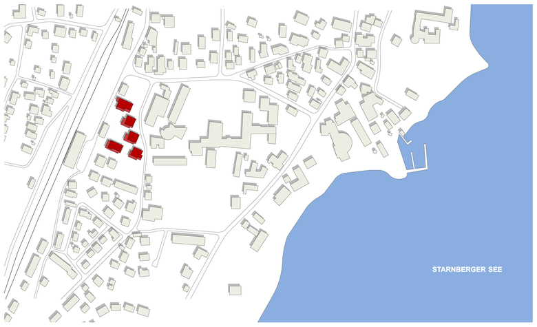 Tutzing verbindet durch seine zentrale Lage zur Landeshauptstadt München und zu den bayerischen Alpen ideal die Erfordernisse nicht nur eines Urlaubs- sondern auch eines Wohnortes. Das Angebot von unterschiedlichsten Freizeitmöglichkeiten und die kulturelle Vielfalt in Verbindung mit der landschaftlichen Ausnahmestellung am Starnberger See ergibt einen idealen Ort für unterschiedliche Bewohnerstrukturen. Das repräsentative Wohngebiet, mit wundervollem Blick auf die Landschaft und das Wasser, ist eingebettet in einen neuen Landschaftspark, umgeben von notwendigen Infrastrukturen des täglichen Bedarfs. Grünräume legen sich um die Häuser, die Bepflanzungen schafft eine behutsame Grenze zwischen öffentlichem und privatem Raum und ermöglichen privat genutzte und geschützte Gärten im Erdgeschoss. Durchzogen wird die organische Form von einem Wegenetz, das sich in kleine Plätze aufweitet, auf denen sich Spielplätze und Ruhebereiche befinden. Es entsteht ein großer grüner Garten, der die einzelnen Gebäude umfließt und viele abwechslungsreiche Räume schafft, die unterschiedlich genutzt werden können. Emotional wirken die frei gruppierten Leuchten, die sich wie Blumen im Garten verteilen und mit farbigen LED ausgestattet den Garten in sanftes Licht tauchen. Zusammen mit dem atmosphärischen Reichtum der räumlichen Strukturen und der Materialauswahl wird das neue Wohnensemble dem hohen gestalterischen Anspruch entsprechen.