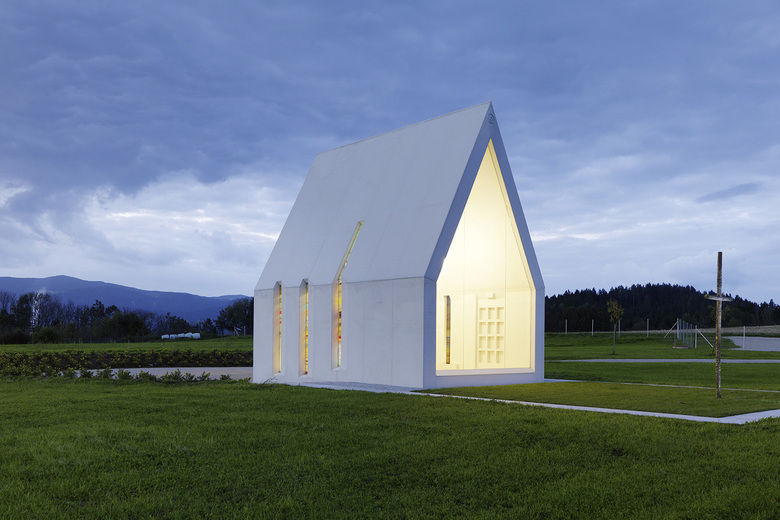 White Concrete in Golden Ratio: The family chapel Maria Magdalena by the architect Gerhard Sacher is a spectacular sculptural object made of white SCC (Self Compacting Concrete) concrete.