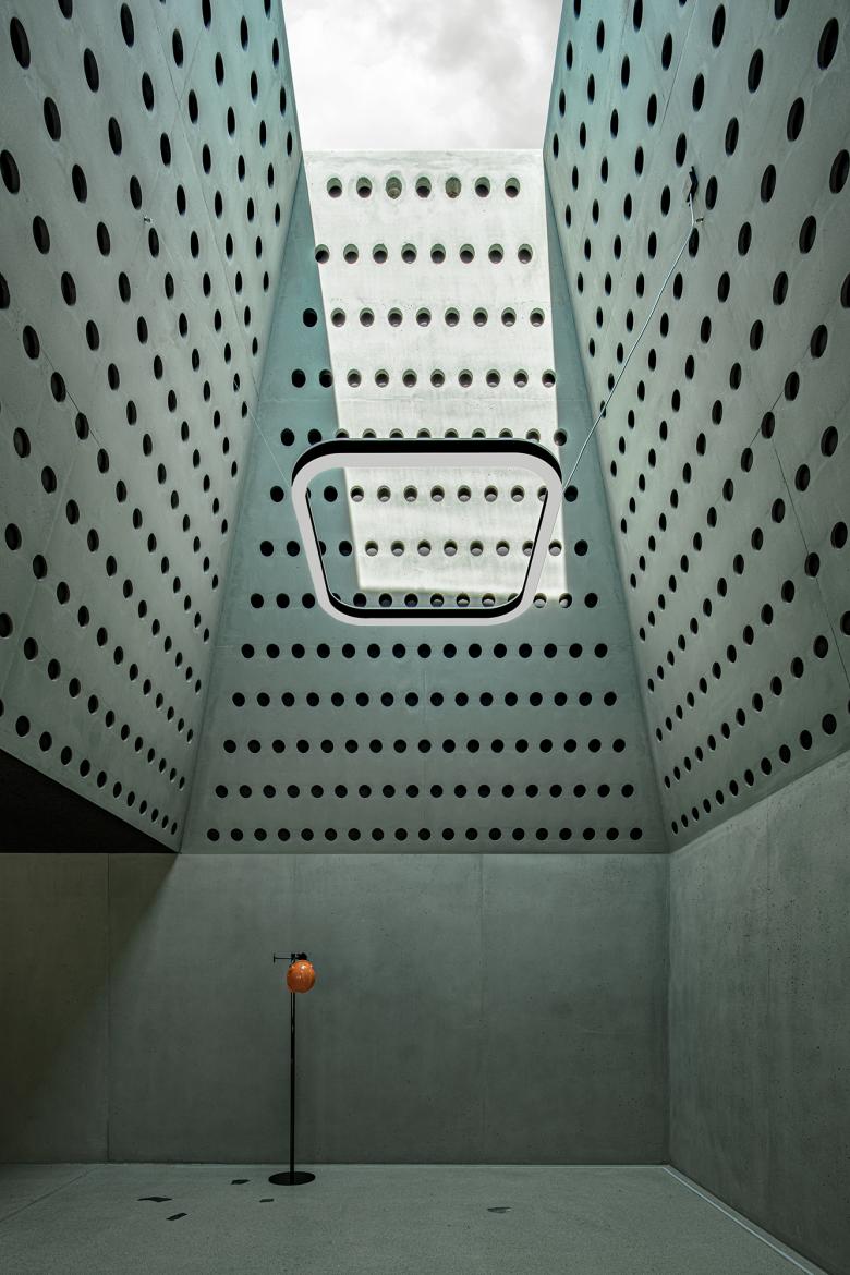 Die Erschließung des Gebäudes erfolgt über einen Treppenkern, der die Eingangssituation an zentraler Stelle neu ordnet. In der schwebenden Struktur entsteht darüber hinaus ein zukunfts- und bedarfsorientierter Mix aus Großraum- und Einzelbüros mit verschiedenen Besprechungsmöglichkeiten für die Mitarbeiter und Führungskräfte. Durch zwei Innenhöfe und mehrere kuppelartige Oberlichter werden die Tageslichtsituation wie auch der Schallschutz gegenüber dem Bestand deutlich verbessert, wodurch eine zeitgemäße Arbeitsatmosphäre erreicht wird. Die beiden Innenhöfe erzeugen im betriebsamen Betonwerk an der Brennerautobahn gleichzeitig lärmgeschützte Freibereiche für die Mitarbeiter.