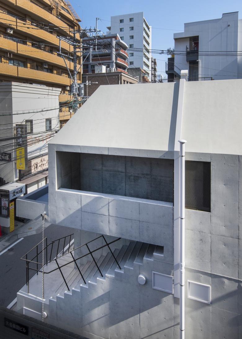 The volume on the ground level was set back in order to created a space which separates the relationship of the alley from the building and preventing the entrance from directly facing the streets surrounding. The approach created by this set back continues to the staircase which connects to the upper floor. In addition the line of the stair circles the building creating its distinct exterior impression. The overall building was constructed based on a frame structure, but by having all its pillars enclosed in the depth of its walls. In general visible pillars in limited zoning are considered as restrictions to the tenant plans, but by successfully designing a structure which creates a flat space, we were able to maintain the freeness for the tenant planning. The outlet / inlets for some of the facilities including air supply and exhausts were accumulated on the rooftop. Expected piping routes were pre-arranged to prevent effects to the exterior even after the tenants move in.