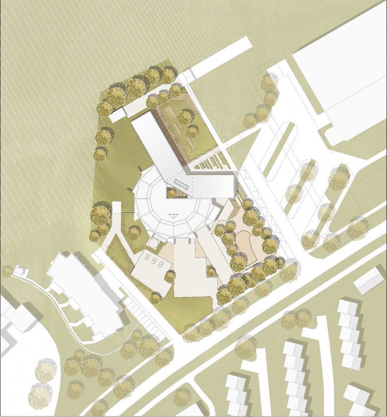 Mit dem vorliegenden Entwurf haben wir uns entschieden, die Bestandsstruktur wertzuschätzen und im wirklichen Sinne weiterzubauen. Der Neubau wird unter Berücksichtigung der radialen Ordnung mit dem Bestehenden verschmolzen.