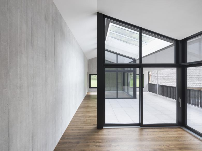 Gleichzeitig bleibt die zeitgenössische Architektursprache erkennbar. Präzise gesetzte Öffnungen verleihen dem Haus Eigenständigkeit, ohne sich von der bäuerlichen Tradition abzukoppeln.