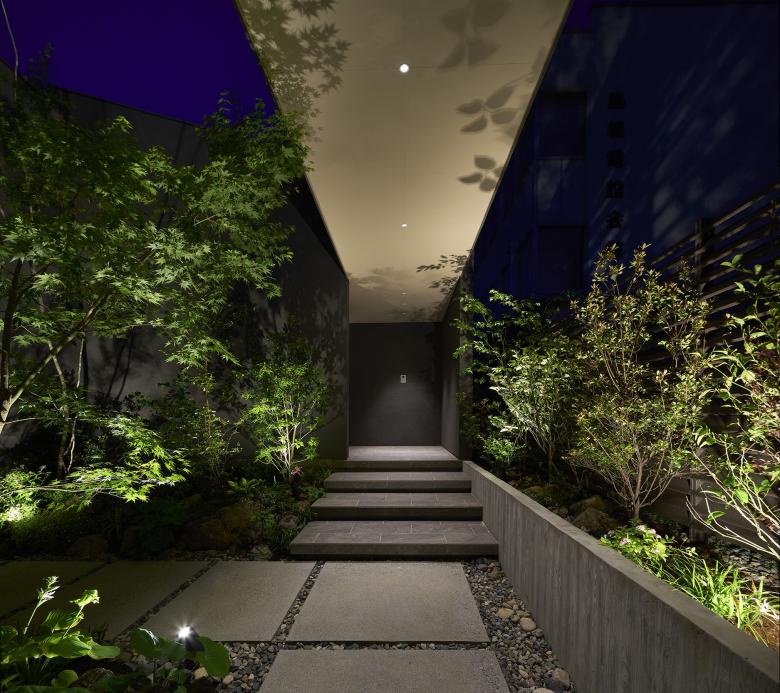 The north garden, rear garden, and east garden bring light into the interior and are designed primarily for visual enjoyment, while the alley garden near the entrance and the west garden contribute to the richness of the streetscape. Each garden is planted with a variety of flowers that bloom throughout the seasons, offering changing colors over the course of the year. These garden scenes can be glimpsed from all living spaces, functioning as devices that incorporate the rhythms of nature into everyday life.