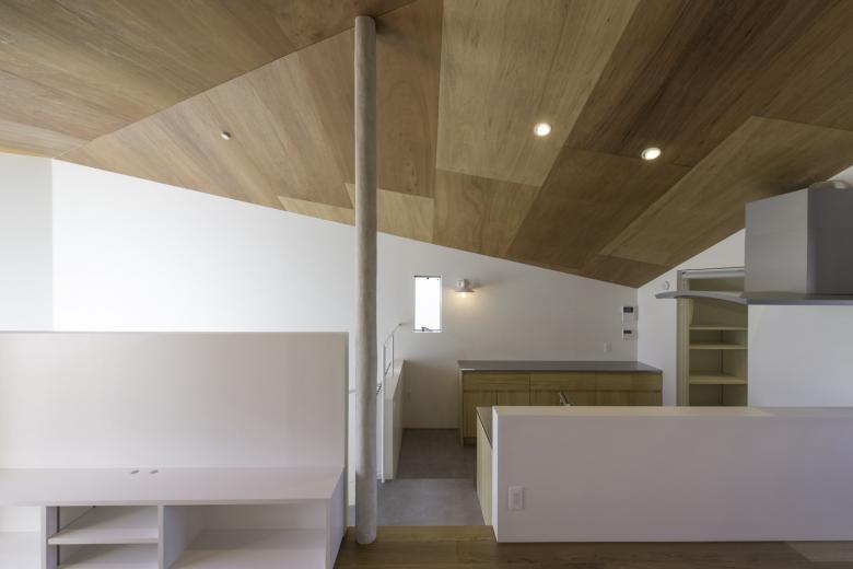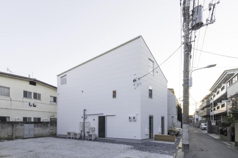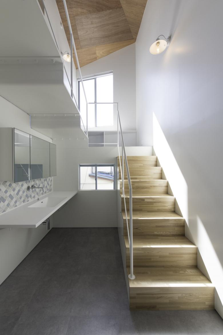 賃貸との界壁を一部解体することで、将来の変化に対応できる余地を残す。内部は、南北に長く3層吹き抜けの路地空間(ハレの場)と機能的な部屋の集合(ケの場)で構成されている。ハレの場は、玄関、ギャラリー、洗面所、書斎、キッチンをシームレスにつないだワンルーム空間。昼間は照明を使用しない、中間期は通風を確保したパッシブな室内環境とした。