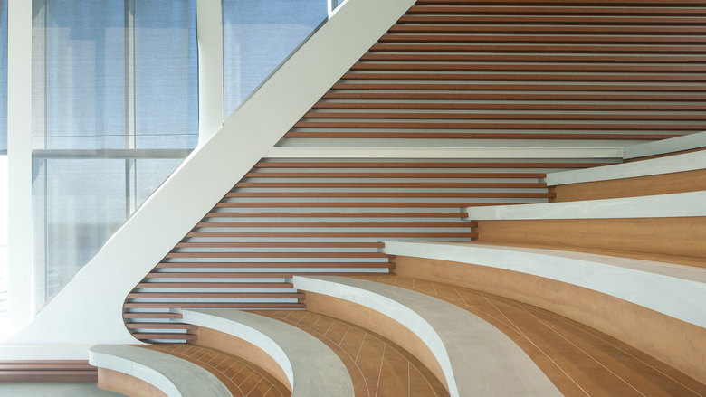 Ein modernes und anspruchsvolles Angebot an sportlichen Aktivitäten ist wesentlicher Bestandteil der TUI Cruises Philosophie. Neben der Joggingstrecke unterstreicht auch die von 3deluxe gestaltete ‚Arena‘ diesen Anspruch. Die große überdachte Halle bietet zahlreiche Sportmöglichkeiten von Kletterwand über Indoor Cycling und TRX-Ganzkörper-Workout und ist zusätzlich als Veranstaltungsfläche nutzbar.