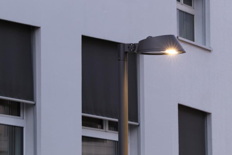 Eine Lichtsteuerung, welche in einen speziell entwickelten Kandelaberdeckel integriert wurde, erlaubt es zudem die Strahler für die Strassen- und Platzbereiche unterschiedlich anzusteuern und so der Nutzung angepasste Szenerien zu erstellen. So werden die Strahler für die Plätze ab einem bestimmten Zeitpunkt sogar komplett abgeschaltet, während sämtliche Leuchten für die Strasse gemäss Normvorgaben das Niveau absenken.