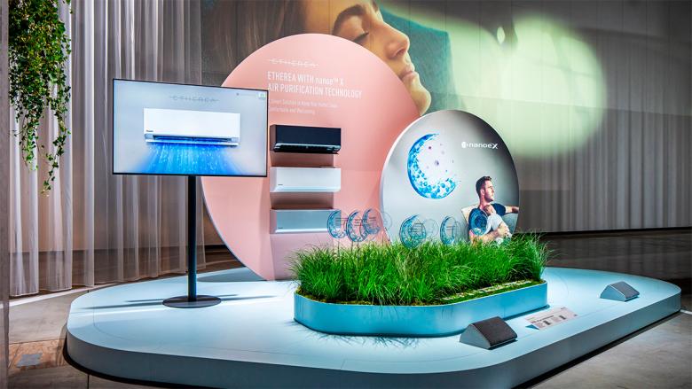 Im Herzen des Standes – der Central Area – widmet sich Panasonic zukünftigen Produkten und Technologien, sowie seinem Engagement für Nachhaltigkeit im Rahmen des GREEN IMPACT PLANS: Gezeigt werden aktuelle Lösungen des Unternehmens in Bezug auf CO2-Neutralität und Kreislaufwirtschaft. Hier schließt sich der Kreis zum nachhaltigen Standkonzept.